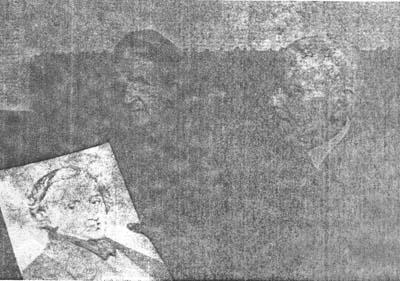 The Regulskos with his sketch of Frederick Chopin.